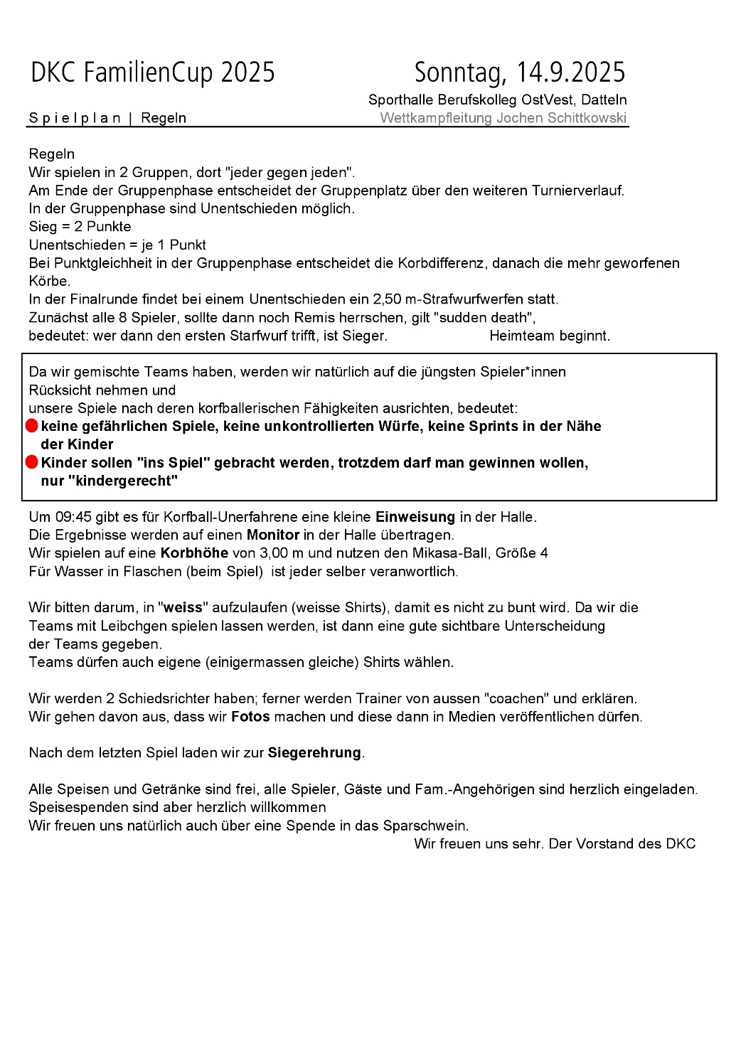 (JS) Das Meldeergebnis kann sich sehen lassen: am kommenden Sonntag findet in der Halle des Berufskolleg OstVest, Hans-Böckler-Str. 2, Datteln der DKC-FamilienCup 2025 mit 8 Teams statt.